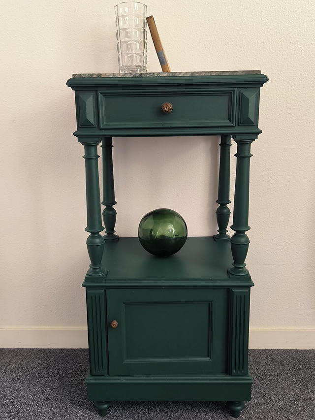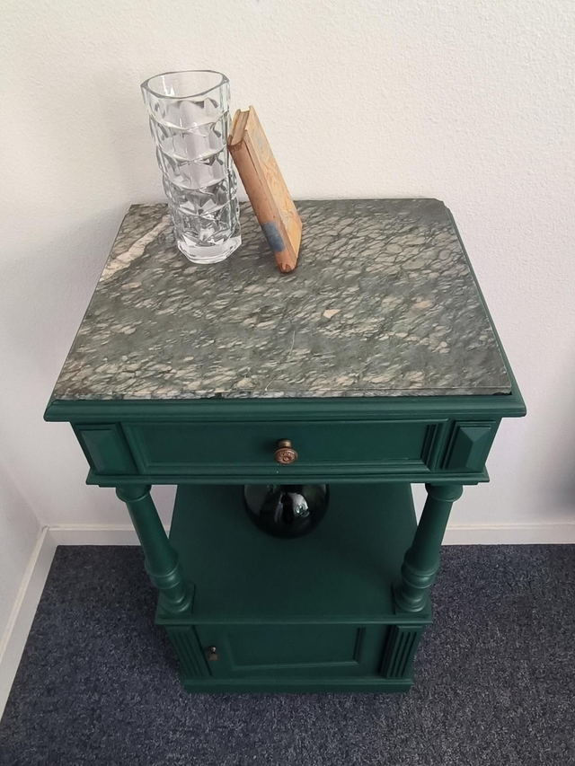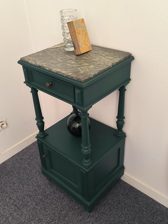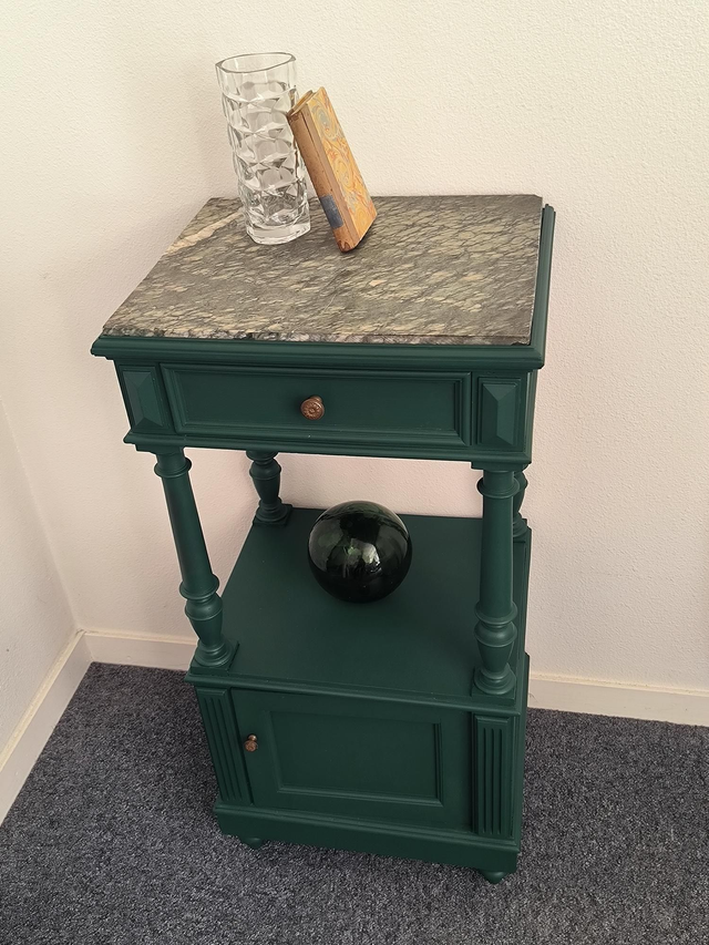 Entièrement traitée et une majorité de trous rebouchés, j'ai assorti la peinture à son joli marbre vert.