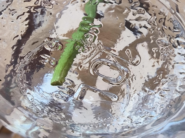 En verre moulé. Verre régulier. Tamponnée au cul.
